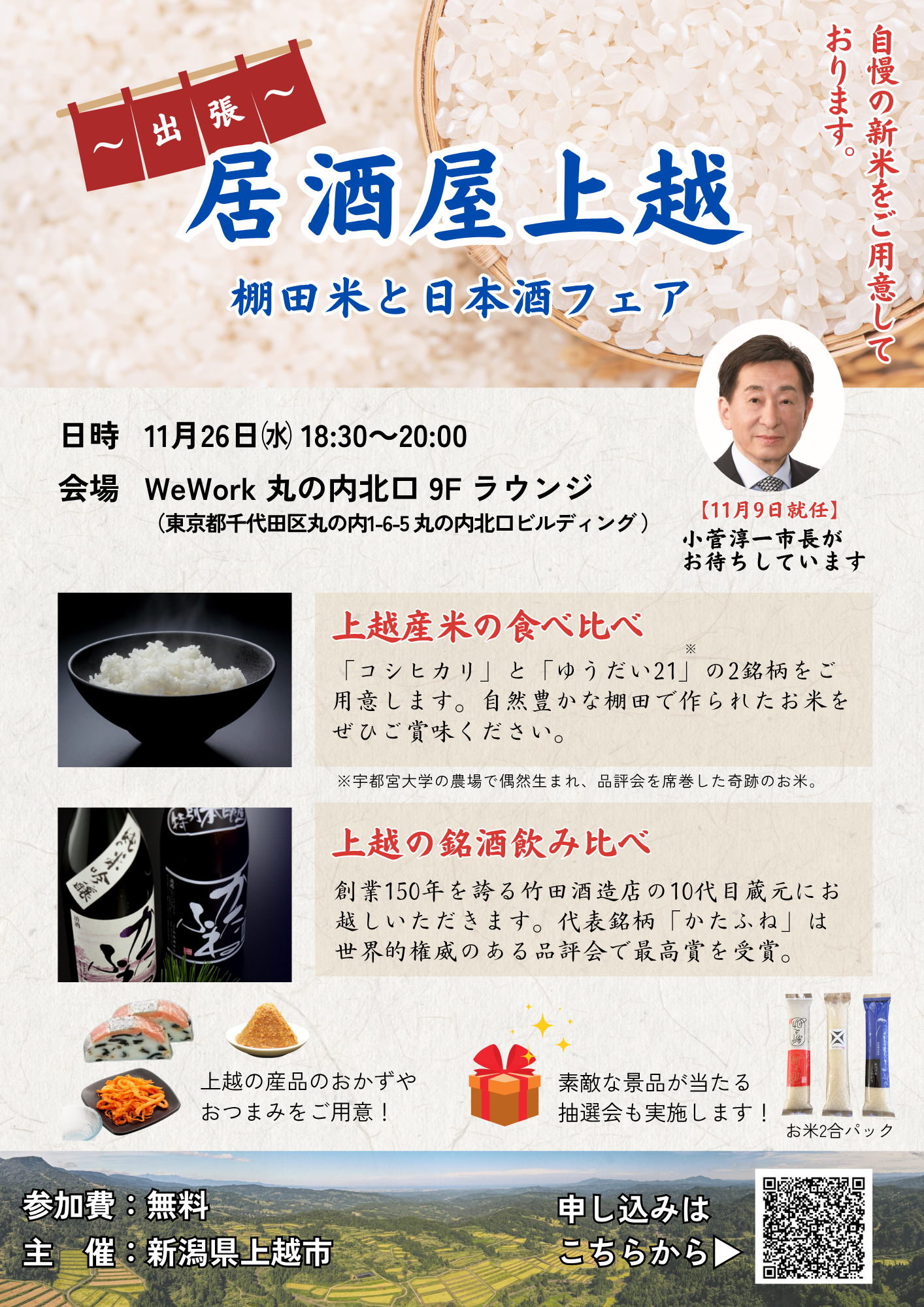 【受付終了】「出張!居酒屋上越 棚田米と日本酒フェア」の開催